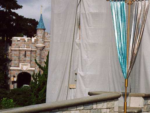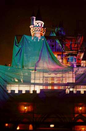 - The castle was covered with scaffolding, as part of its repainting.